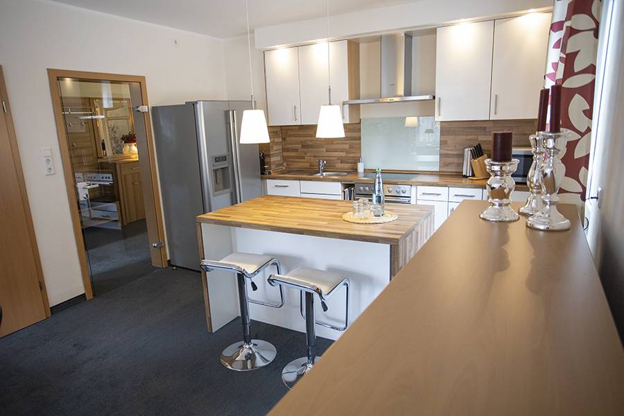 So z.B. sind alle Apartments mit großen und modernen Küchen ausgestattet; inklusive jeglicher Küchengeräte und Zubehör. Ebenso wurde darauf geachtet, dass eine große Anzahl an Geschirr, Gläsern, Besteck, Töpfen, etc. vorhanden ist. Alle Wohnungen verfügen u.a. über Nespresso-Kaffeemaschinen.
