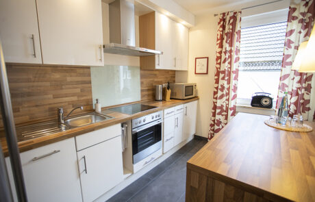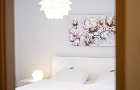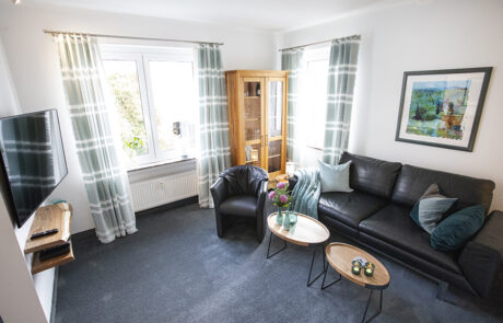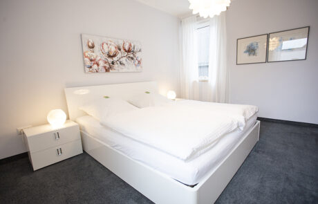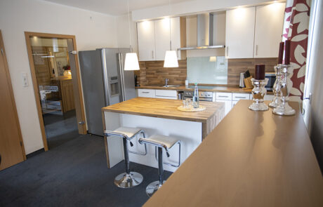 The apartment "Altstadt-Chalet" was the first of the four apartments to be completely refurbished. In November, 2020 the apartment was newly renovated. It is the second largest of the apartments with 93 square meters and is divided into two bedrooms, a large living room, dining room with open kitchen, large shower-bath and a very generous entrance area. It is located on the 1st floor of the house. The apartment is very spacious and high quality equipped. The floor coverings are made of quality carpet and tiles.