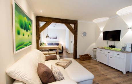 The apartment “Altstadtjuwel” was completely refurbished and completed as the second of the four apartments. The one-bedroom apartment leaves nothing to be desired with its 40 sqm. It is located on the 1st floor of the house. The apartment has been furnished with great attention to detail. The floor coverings are made of quality laminate and porcelain stoneware. The apartment is suitable for allergy sufferers.